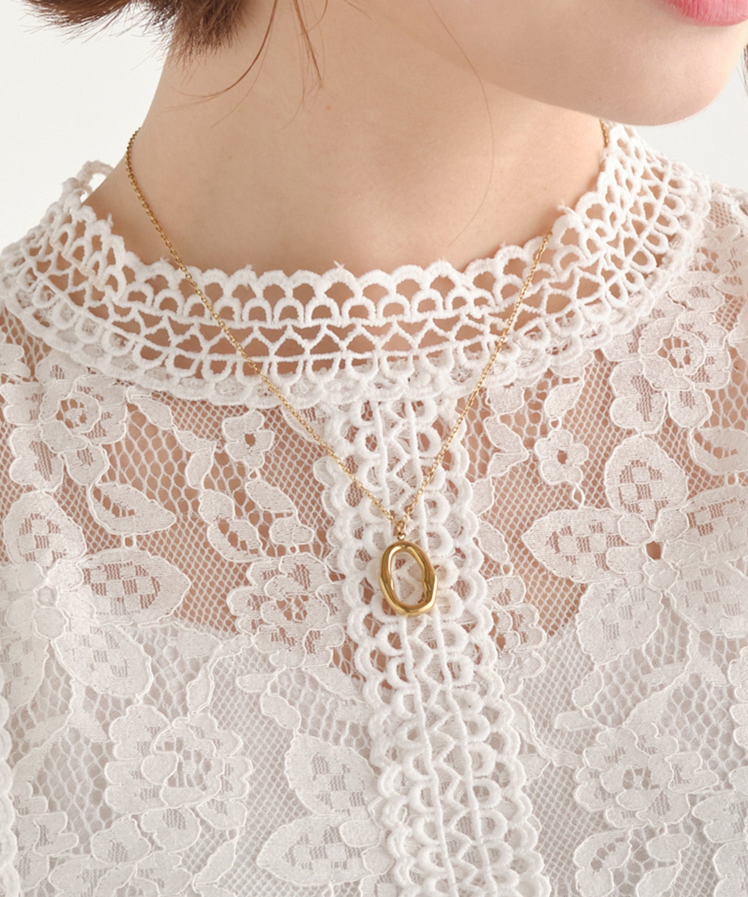 波打つような加工の施された楕円のトップがシンプルな美しさを放つネックレス。シルバーとゴールドの二色からお選び頂けます。ステンレス製で金属アレルギー対応の素材です。錆びにくく敏感肌やアクセサリーでかぶれやすい方にもおすすめ。
