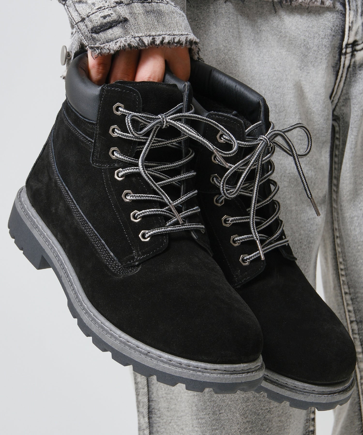 重厚感ある本革スエードが足元を格上げ。