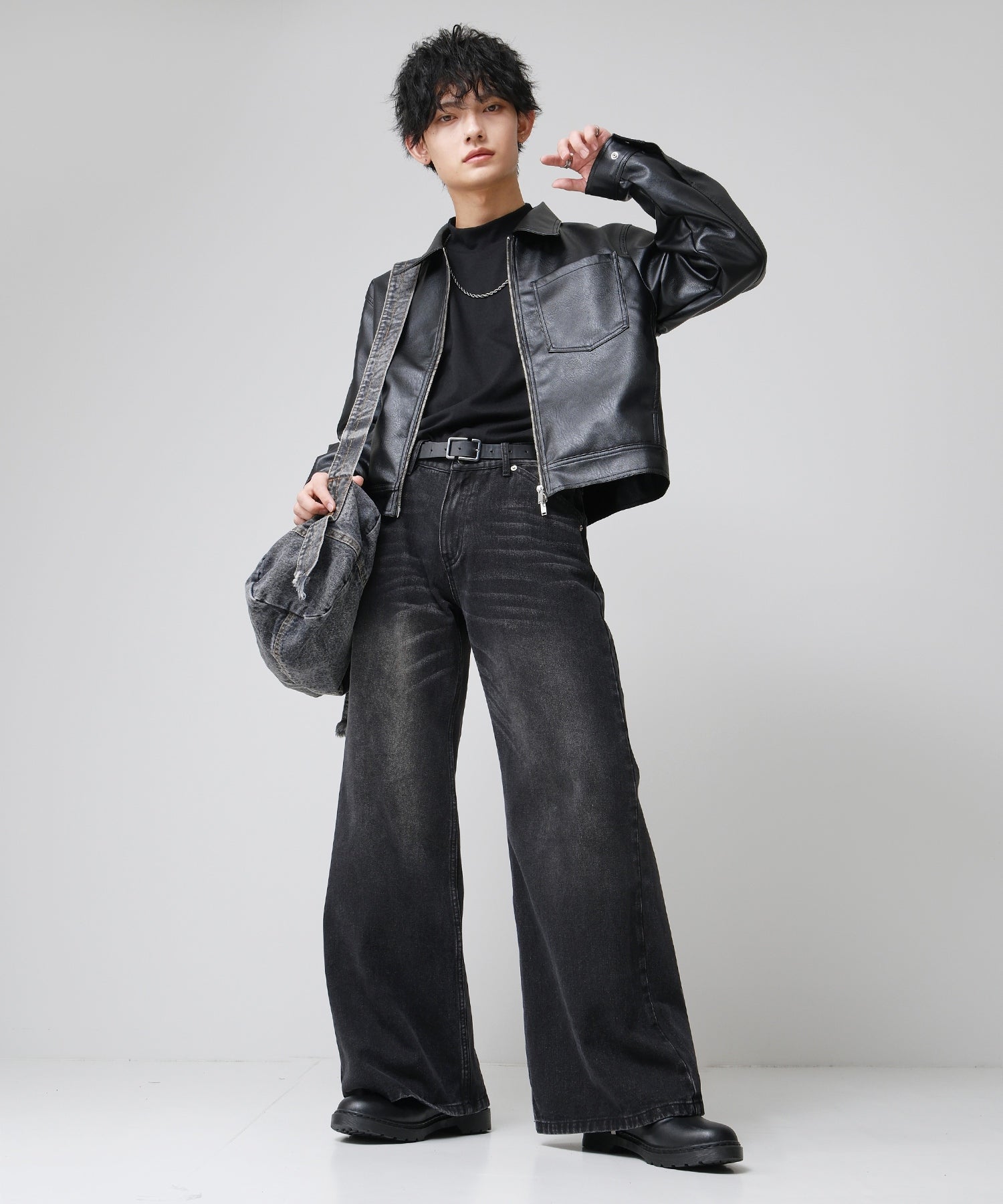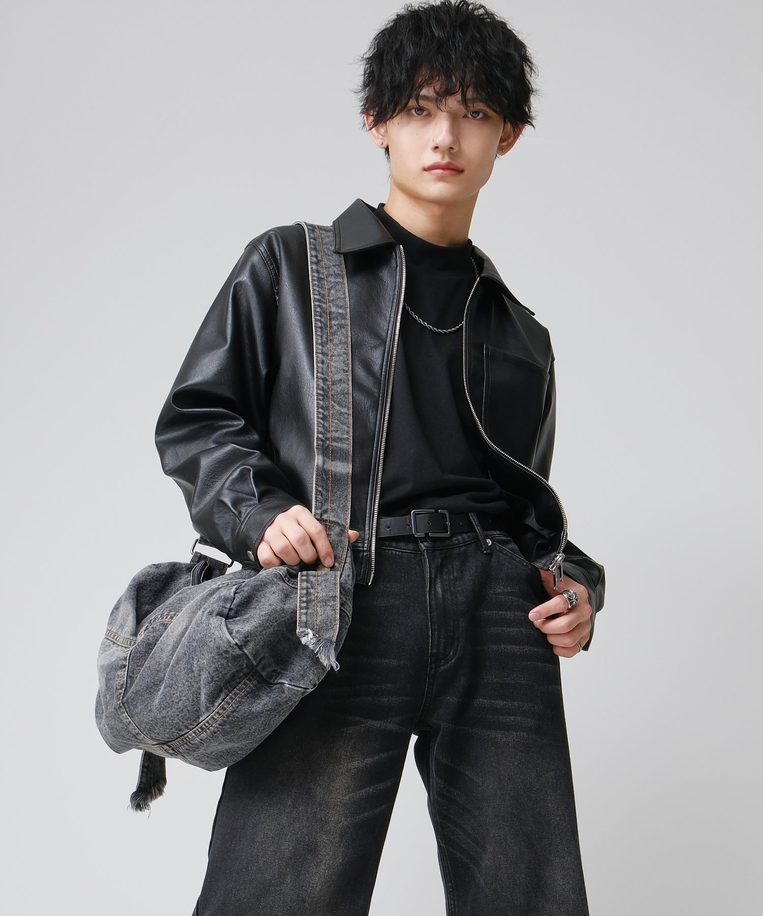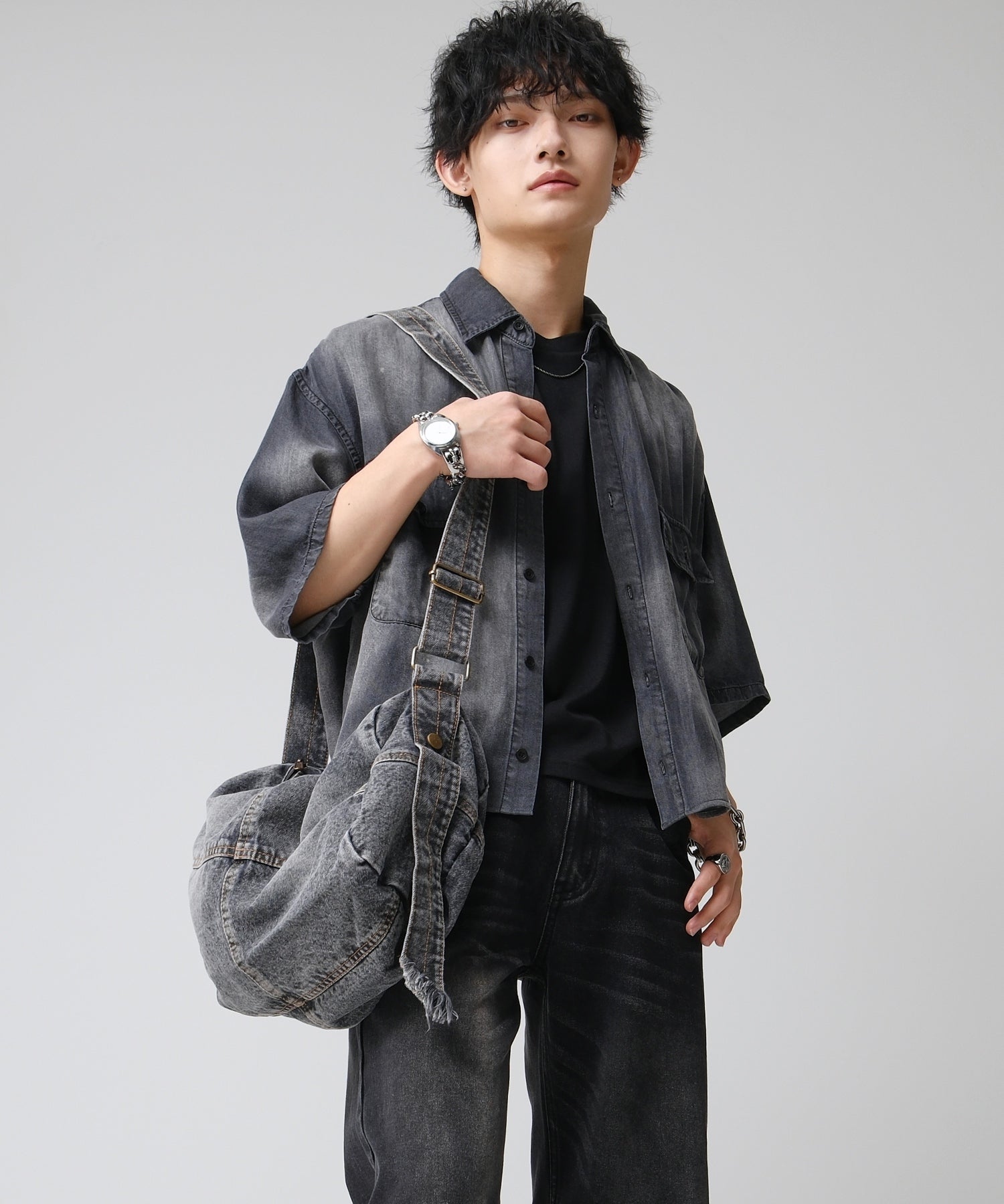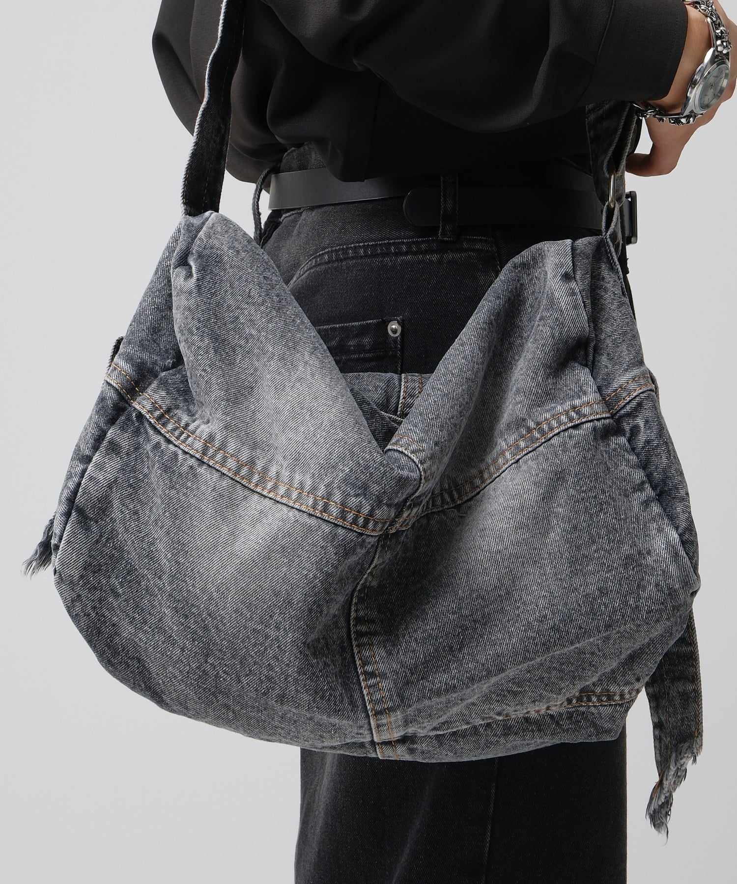 カジュアルからストリートまで幅広く活躍するデニム素材が目を引くショルダーバッグ。