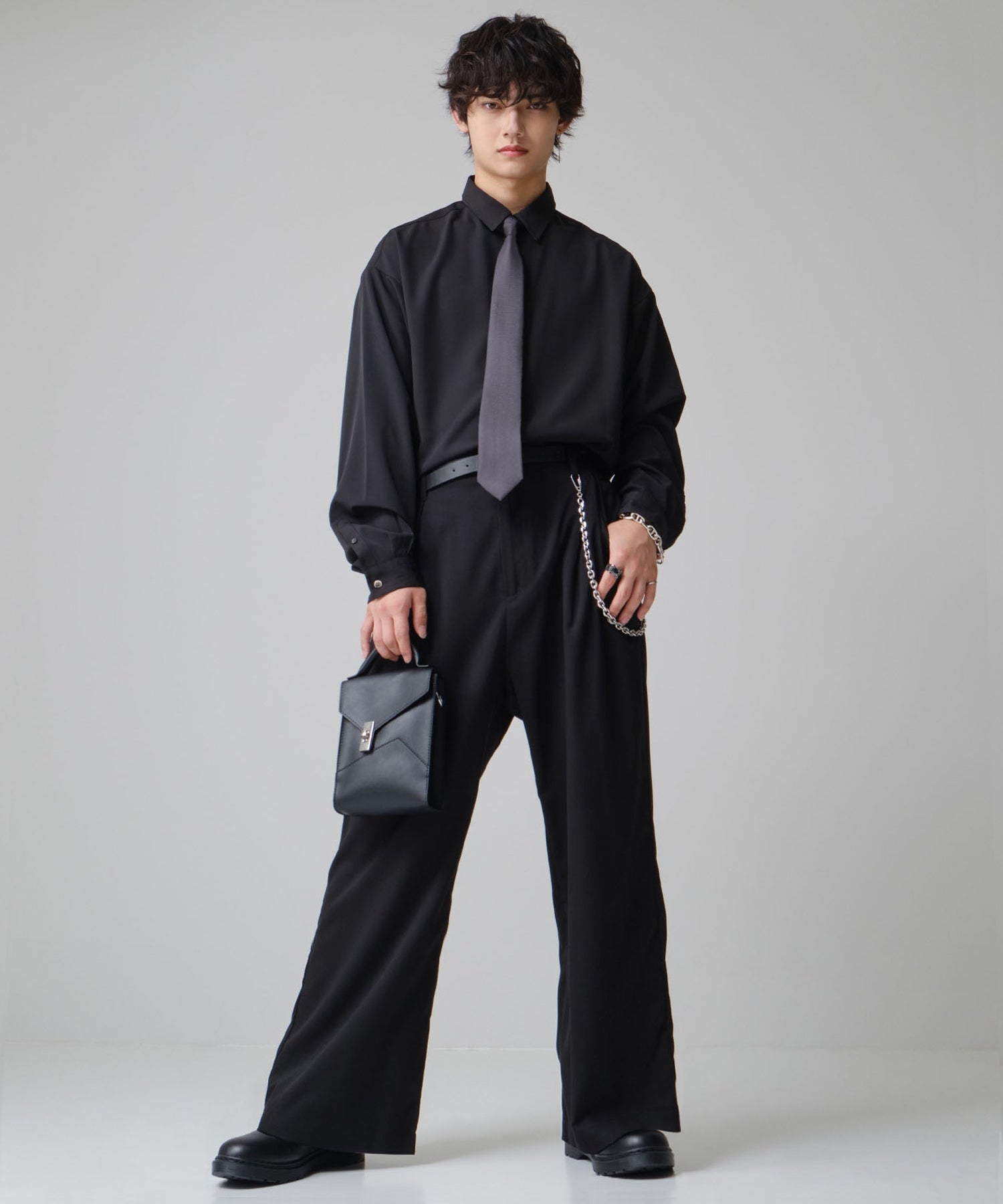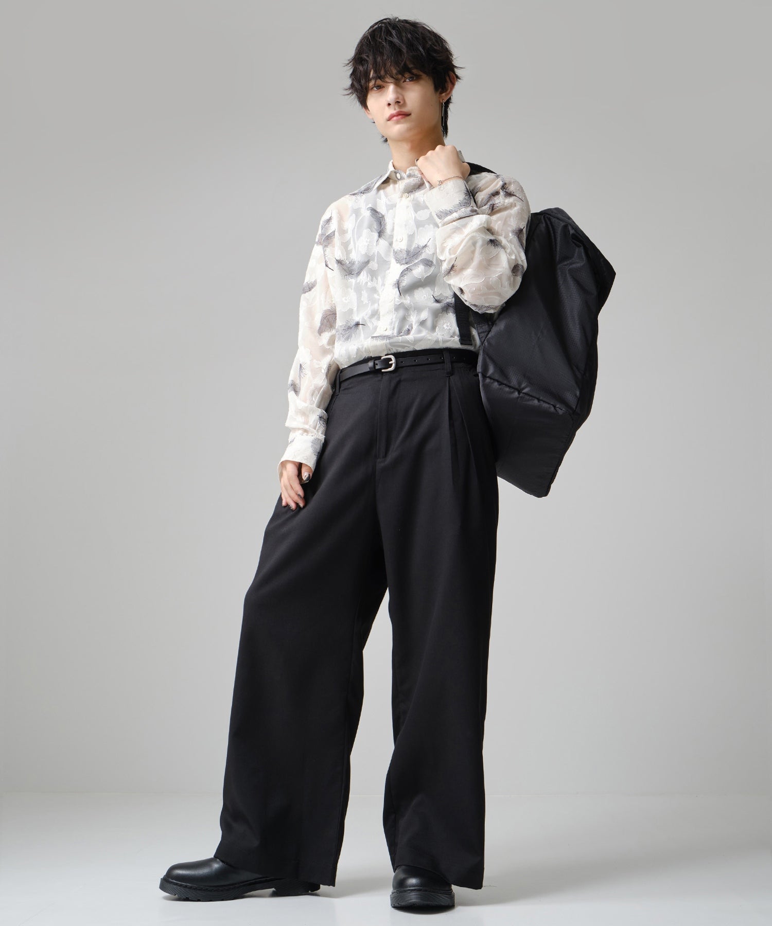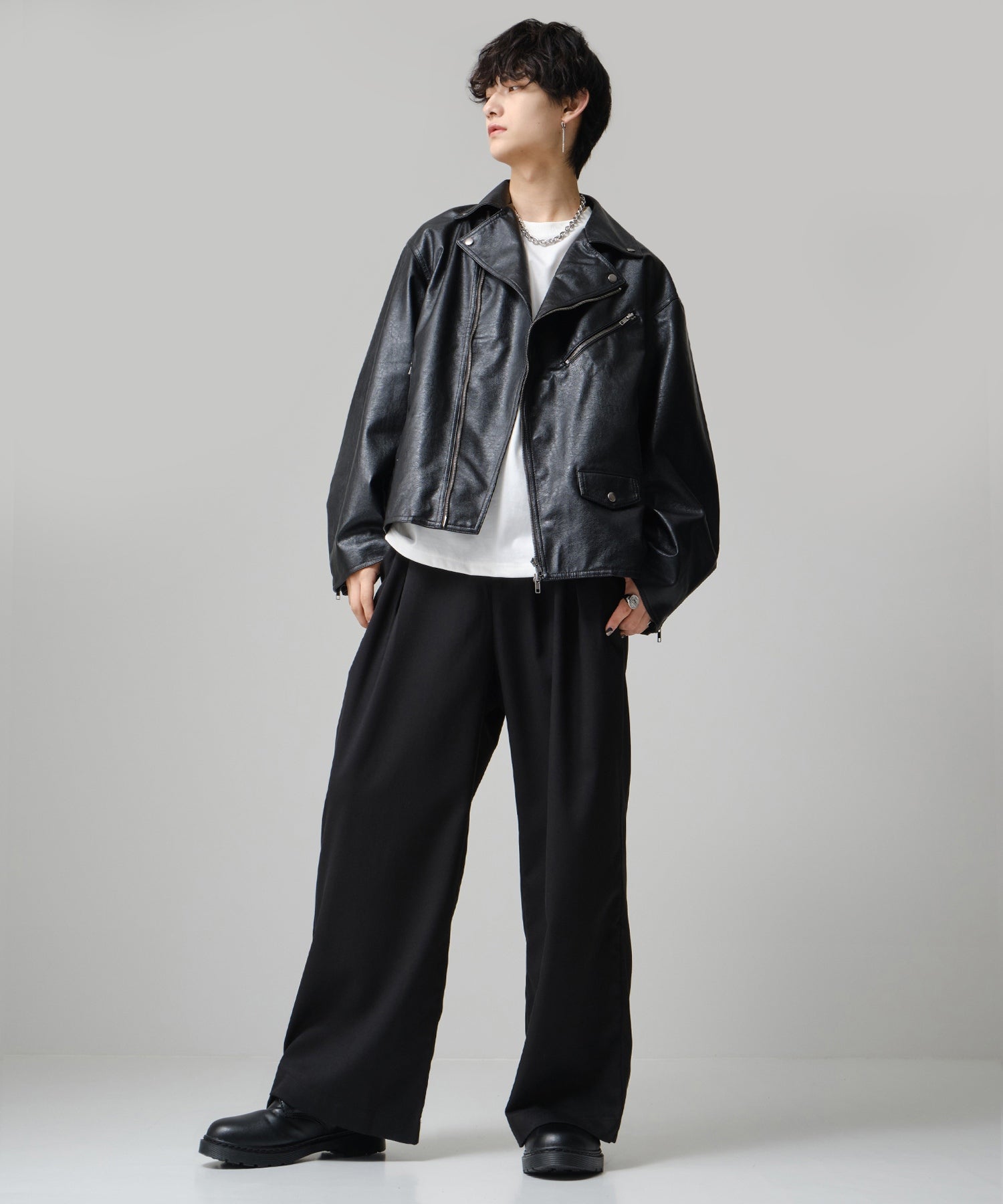 ゆとりあるワイドシルエットに、脚元はすっきりテーパード。